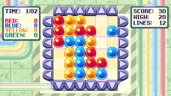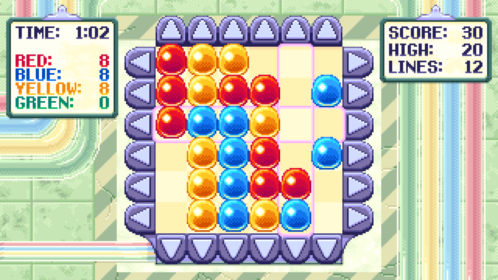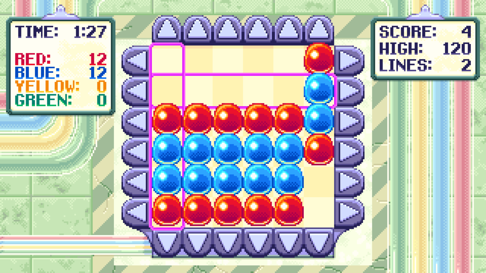 This game is a remake of the Barrels minigame from Mario & Luigi: Superstar Saga. Rules are the same as the original: align the blocks into rows or columns of 6 to clear them and score points. Align multiple rows all at once to score multiples of points; clear 4 rows to score 16! New colors will be introduced once a certain number of lines are cleared. Can you beat my personal high score of 120?